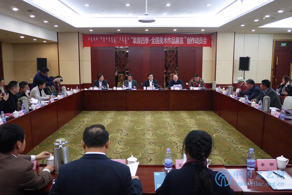 10月24日,由中国美术家协会、内蒙古自治区党委宣传部、内蒙古自治区文联联合组织的草原四季·全国美术作品展览创作动员会在北京召开。中国美术家协会分党组书记、驻会副主席、秘书长徐里,内蒙古自治区文联党组书记、副主席张宇出席会议并讲话,中国文联美术艺术中心副主任李伟出席会议,内蒙古自治区文联党组成员、副主席艺如乐图作中国美术家草原四季采风写生活动总结,中国志愿者协会理事、清华美术学院教授王铁牛作美术家代表发言。来自全国的30余位著名美术家、采风写生团成员出席会议。会议由中国文联美术艺术中心活动管理处副处长杜松儒主持。
