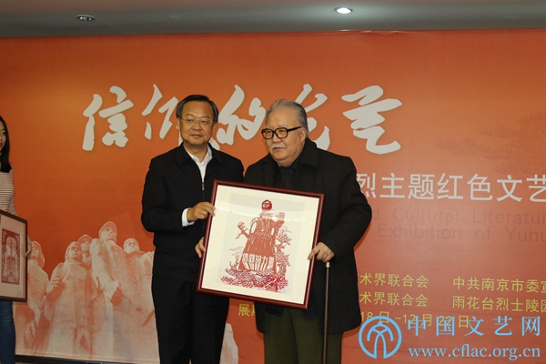 中国文联党组成员、书记处书记陈建文向烈士家属赠送雨花英烈主题作品