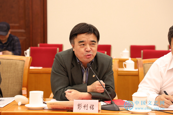 彭利铭在座谈会上说到:燕京书画社走出的这条把艺术品变为商品,能够走向世界,是我们书画界开先河的一个举措。石占成社长提出我们要从卖文化转型为做文化,这个思考非常到位。卖文化过去很简单,但是现在认识到燕京书画社将来以后如何发展,这需要一个冷静的思考。但是我相信有燕京人的精神、创业的精神,在新的时代,我们大力提倡文化自信,而且在这么一个好的机遇期,我相信燕京书画社将会有五十年、六十年、一百年的大庆,到那个时候燕京书画社也是我们百年老店的时候,在座都不在,但是我们后人会说燕京人的精神值得我们学习。