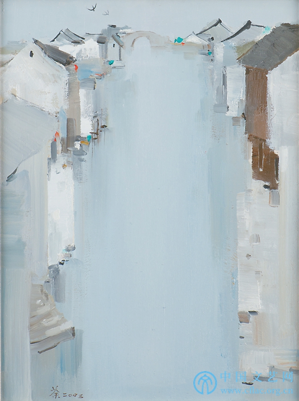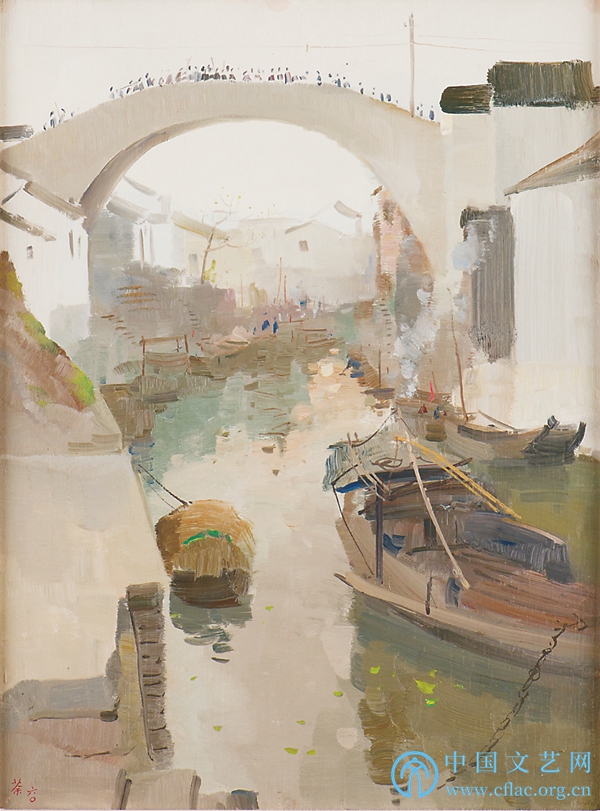 故乡清晨(木板油画) 1960年 新加坡国家美术馆藏 吴冠中画并捐赠
