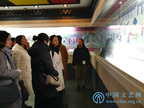 11月22日至24日,“新年画·新生活”——2020年画传承发展大会在山东潍坊举行。图为与会嘉宾参观杨家埠木板年画产地。