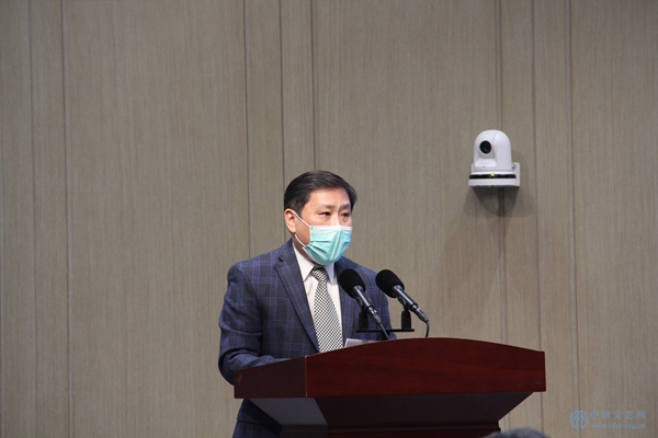 4月30日,由中国文学艺术基金会、文投控股股份有限公司联合主办的“中国文学艺术基金会冰雪文化专项基金”启动仪式在北京冬奥组委首钢办公区举行。图为中国文学艺术基金会副理事长兼秘书长向云驹致辞。