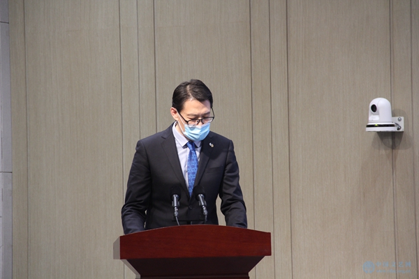4月30日,由中国文学艺术基金会、文投控股股份有限公司联合主办的“中国文学艺术基金会冰雪文化专项基金”启动仪式在北京冬奥组委首钢办公区举行。图为北京市文化投资发展集团党委书记、董事长周茂非致辞。